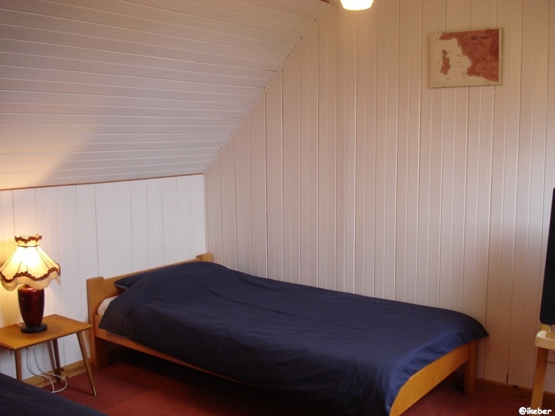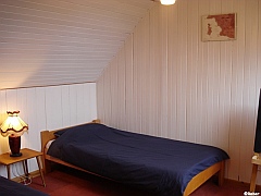 Chambre double: Bois en pin, lit deux personnes, moquette, tables de nuits, armoires.